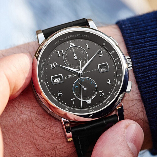 罗宾尼的这款瑞表,采用耐磨性较好的牛皮表带,纹理细腻,柔软有韧性,日常佩戴很舒适。