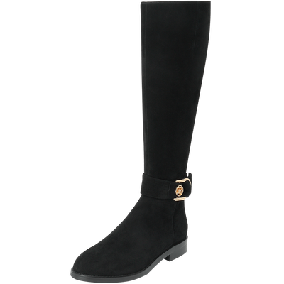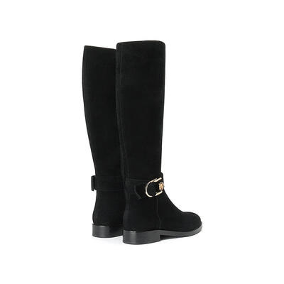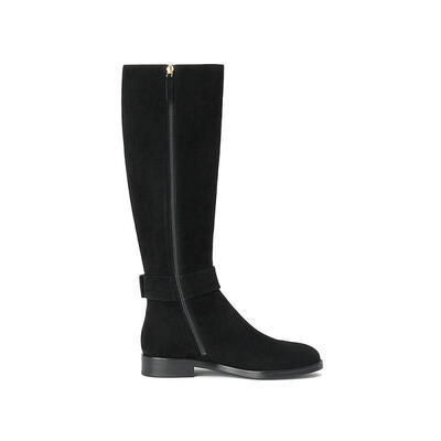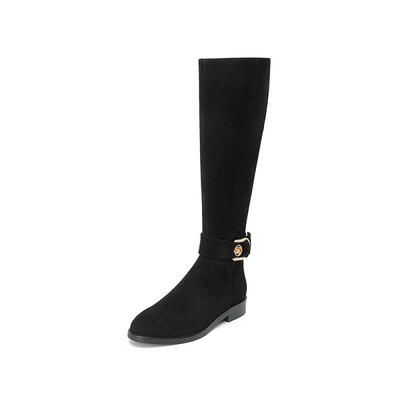 长靴采用圆头和低粗跟的设计,款式古朴大方,穿着帅气干练,视觉上帮助拉长腿部线条。脚踝处添加了饰扣点缀,时尚不单调。
