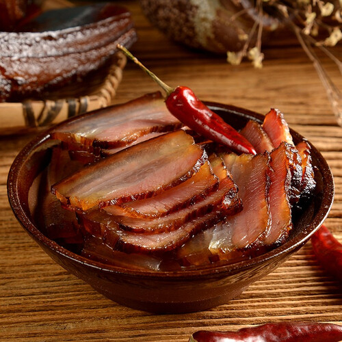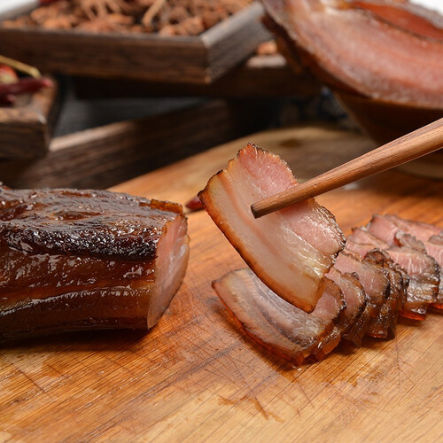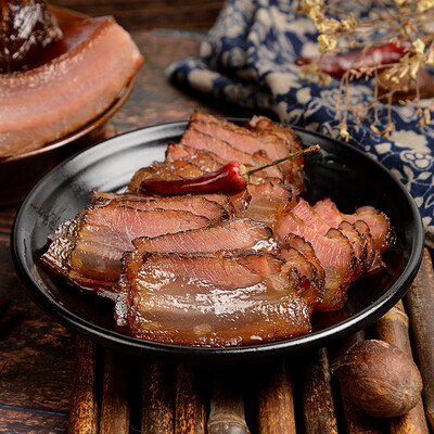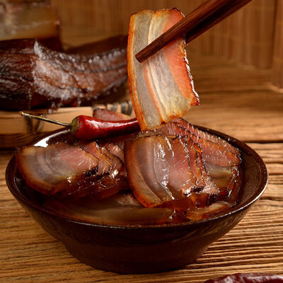 用传统的柴火烟熏,吃着一点都不肥腻,滋味鲜美,咸香可口,淡淡的烟熏味越吃越香。腊肉肥瘦适中,肉质紧实细密,嚼劲十足。