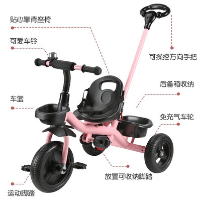 推把可灵活控制转向,辅助孩子骑行,陪伴安全出行,适合大众身高的家长需求,免充气减震防爆胎,耐磨缓震,孩子骑行更省力。