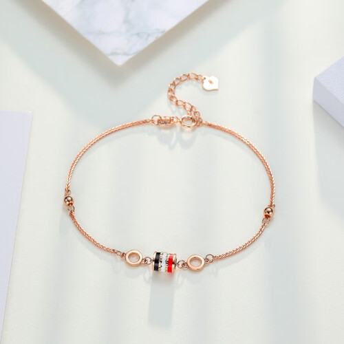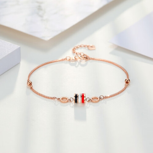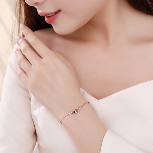 手链搭配了小蛮腰吊坠装饰,还融入了缤纷撞色元素,为简约的设计融入了亮点,佩戴时尚吸睛有个性。