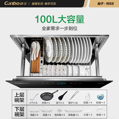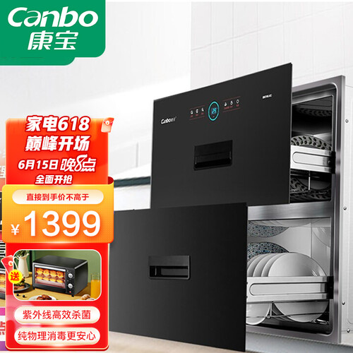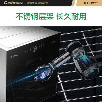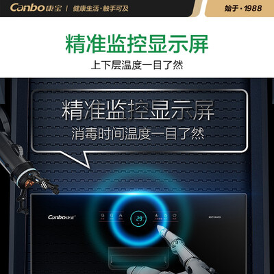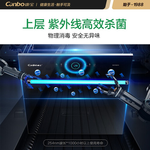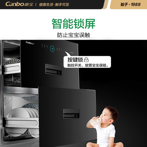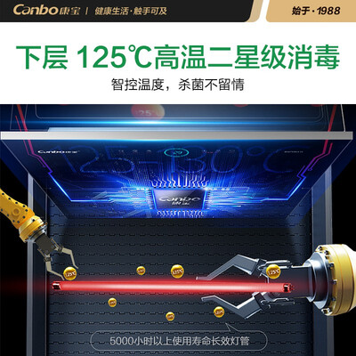 紫外线纯物理消毒,125℃智控高温,顽固细菌无处逃,消毒无异味。采用扩容一体钢化玻璃面板,增容更坚固,更有质感。