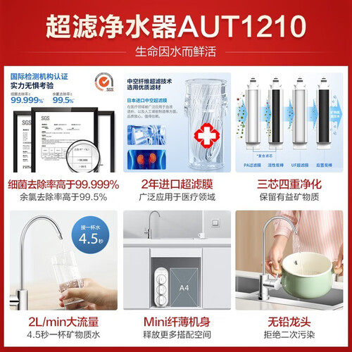 具有三芯四重净化系统,配合椰壳炭装置,吸附异味,并充分保留矿物质。纤薄的箱式机身,轻松容纳橱柜之中,占地更小。