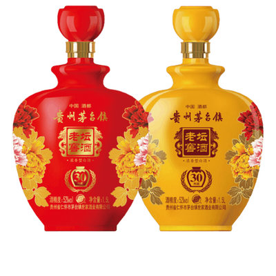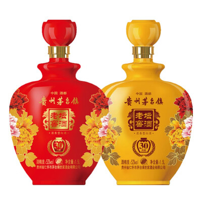 贵州茅台镇的老坛窖酒,包装精美华丽,适合作为礼品送人。精选高品质小麦、玉米等粮食作物酿造而成,酒体细腻绵长,口感好。