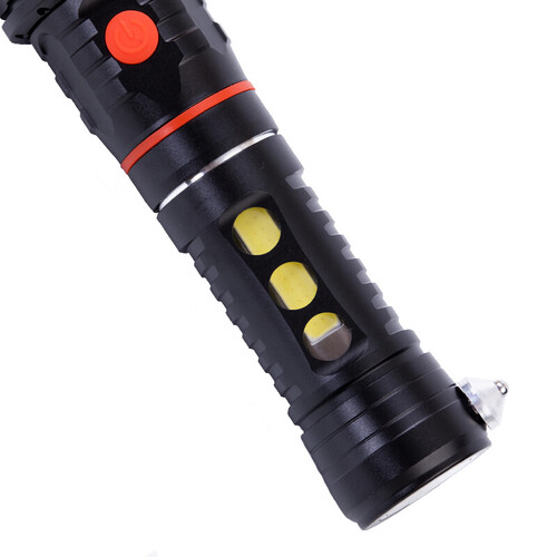 采用L2高亮芯片,不仅照明范围广,射程范围也更加遥远。尾部采用钢锥安全锤的设计,可用来防身或破窗自救使用。