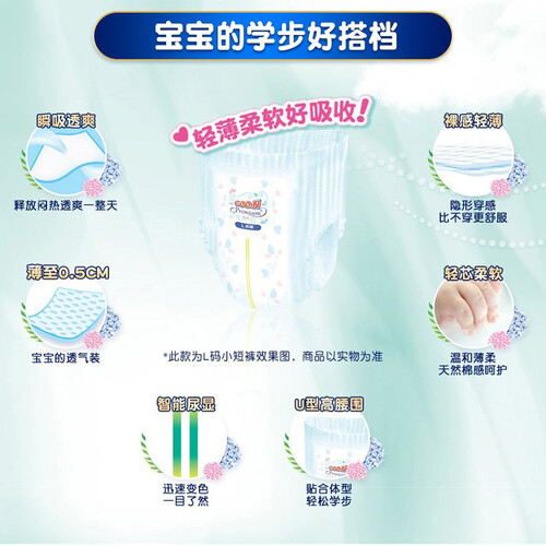 采用天然棉感为材料,为宝宝娇嫩的肌肤提供自由呼吸,守护干爽与舒适。增加了富含维E能够滋养娇嫩宝宝的屁屁。