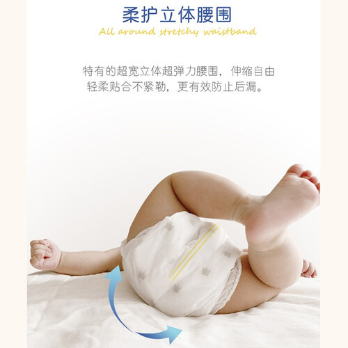 选用丝般柔滑的热风无纺布,菱形立体打孔设计,更柔软透气。超薄透气芯体,裸感好自在。就是贴合度不足,不太适合好动的宝宝。