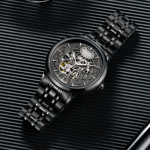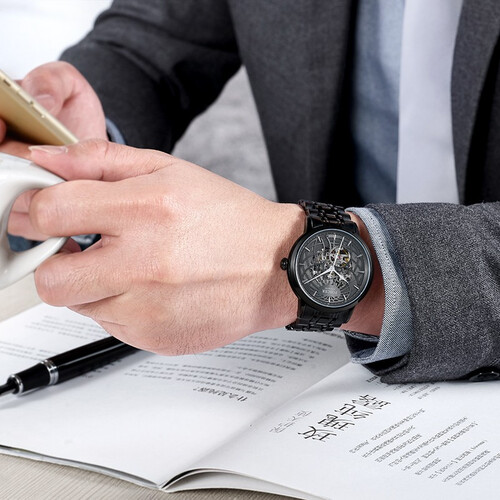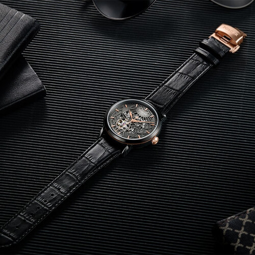 表镜运用人工合成蓝宝石玻璃制作,耐磨性强,坚固不易刮花。透底的表背,内部元件一览无遗,体验机械运行美。