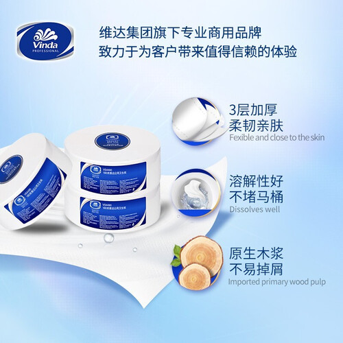 这款卷纸精选原生木浆制成,绿色造纸无添加增白剂,湿水也不易破,且拥有细腻亲肤的触感,拒绝粗糙体验,细心关怀您每一寸肌肤。