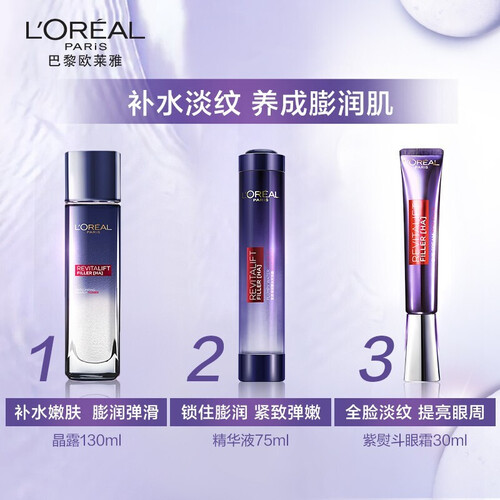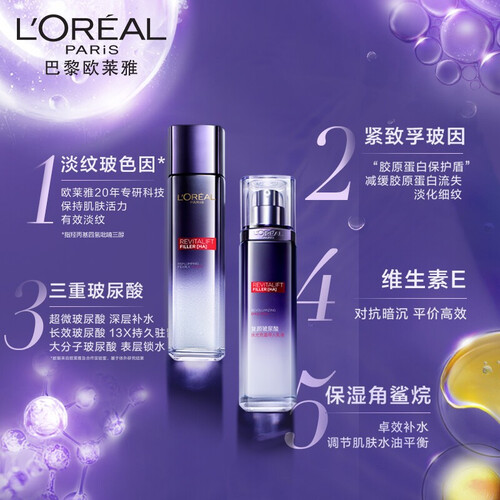 打造澎澎水光肌的护肤套装,蕴含高浓度的玻尿酸成分,能填充抚平干纹细纹,提升面部轮廓,让肌肤更显水嫩光泽。