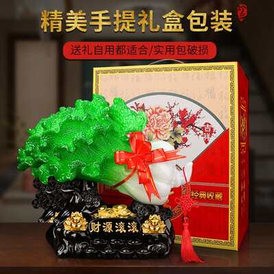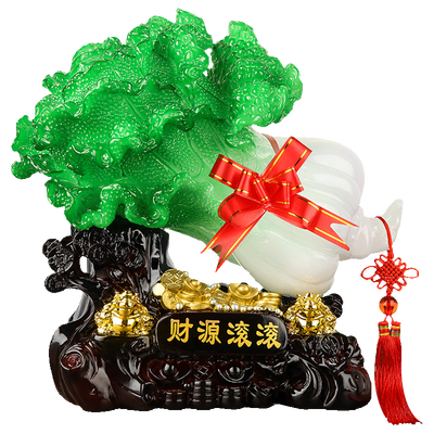白菜造型别致晶莹剔透,搭配栩栩如生的金蟾口衔金币,身披铜钱财富。吉祥的寓意可以带来财富增值,适合开业送礼。