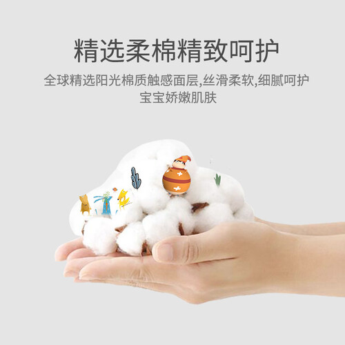 表面拥有几万个表层微细孔,轻薄透气,能够让屁屁时刻自由呼吸。内置两层吸收芯体,海量瞬吸,可以快速吸收尿液。