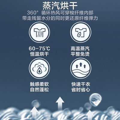 360°循环热风烘干,穿透纤维带走水分,同时维持纤维弹力。BLDC变频电机,动力澎湃持久稳定,快速脱水更省电。