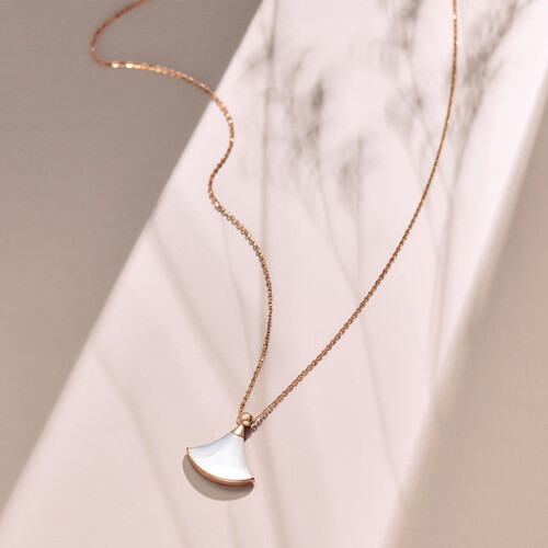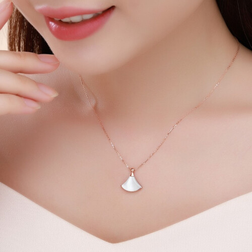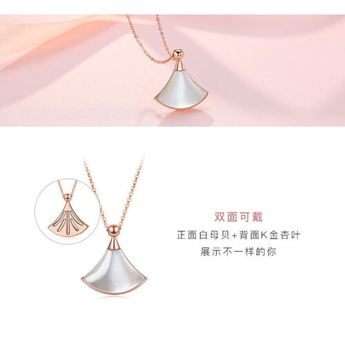 玫瑰金搭配白色母贝,质感温润细腻,打造出活泼俏皮的“小裙”项链,整体气场仙气十足,佩戴之后格外彰显甜美的少女风。