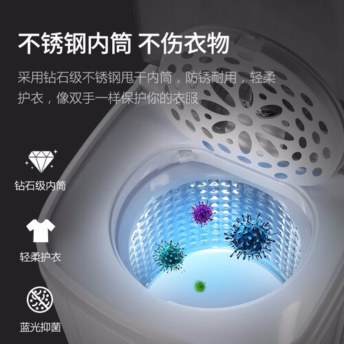 内置蓝光抑菌技术,可以有效的消除脱水机内的细菌,给您带来更加健康的脱水环境。同时PP材质的机身设计,不易产生异味。