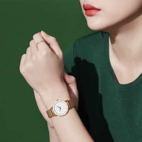 双针简洁设计,给人清新爽利的感觉,没有拖沓累赘感。50米生活防水,省去了频繁脱戴的麻烦,以免意外遗忘丢失。