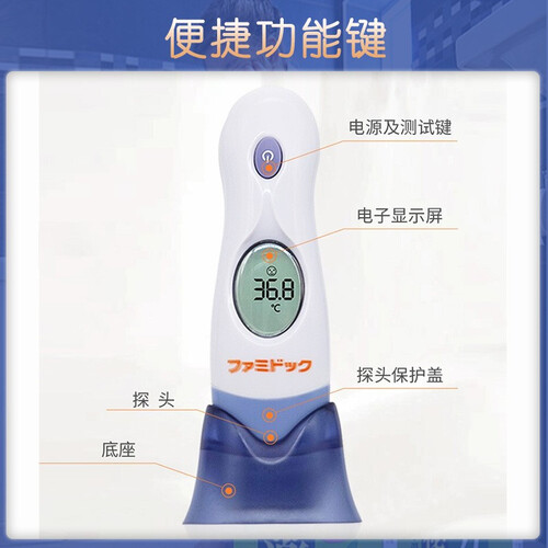 同时测量耳额温度,效率更高,高温自动报警,适合中老年人使用。通过红外线测量,测温速度快,内部不含水银,不危害身体。