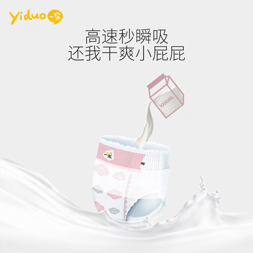 双重防侧漏护围,贴合宝宝臀部,尽情玩耍不侧漏;添加超柔纺粘底膜,能减少屁屁摩擦;1000万双向透气孔,可快速排湿去热。