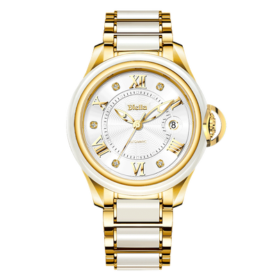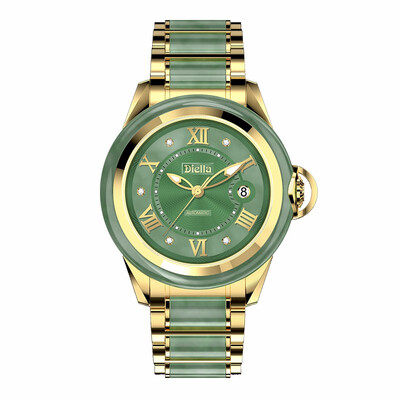 表盘中融入和田玉元素,增添设计感,出席宴会能提升个人魅力。盘面三点钟方向融入日期窗口,抬腕便捷查看日期。