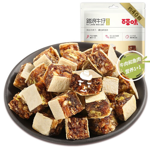 甄选优质海洋鱼肉,使这款肉干口感更加鲜美可口,同时采用夹心设计,令你食用口感层次更加丰富。