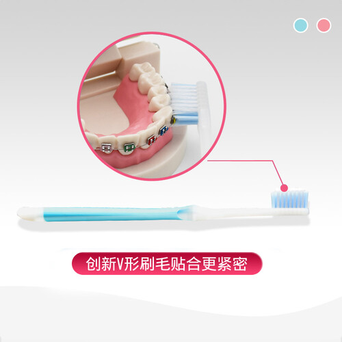 采用日本齿科推荐的边缘护龈软毛,V型刷毛紧贴托槽,避免二次污染,边缘超细软毛深入清洁口腔盲区,清洁力度更强。