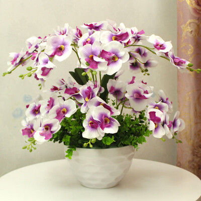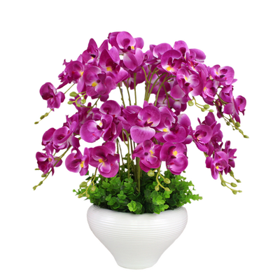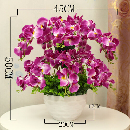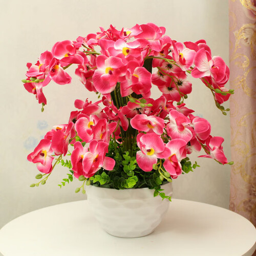 绢布+塑料花杆,制作出的蝴蝶兰惟妙惟肖。结合浓郁的色彩,清新醒目,优雅美观,适配多种环境。