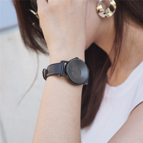 严选进口小牛皮表带,细腻柔韧,舒适有弹性,结合凹陷的表盘设计,沉稳又不失型酷气质,可搭配不同风格的服装。