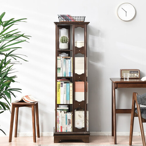 采用旋转式设计,占地面积小,收纳能力强,可节省室内空间。搭载厚实的实木支架,扎实牢靠,储物更安心。