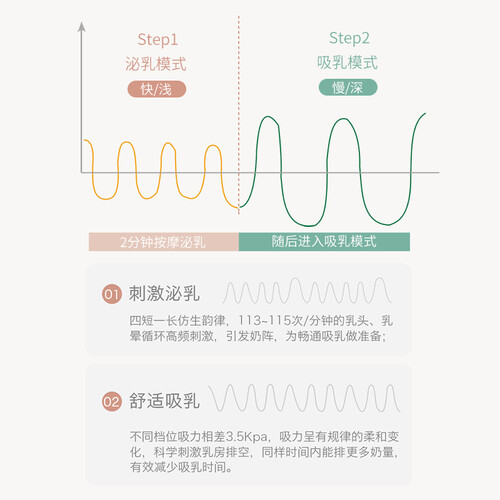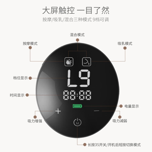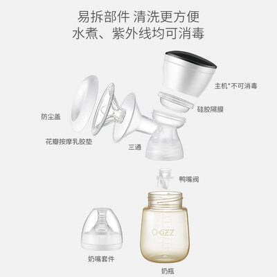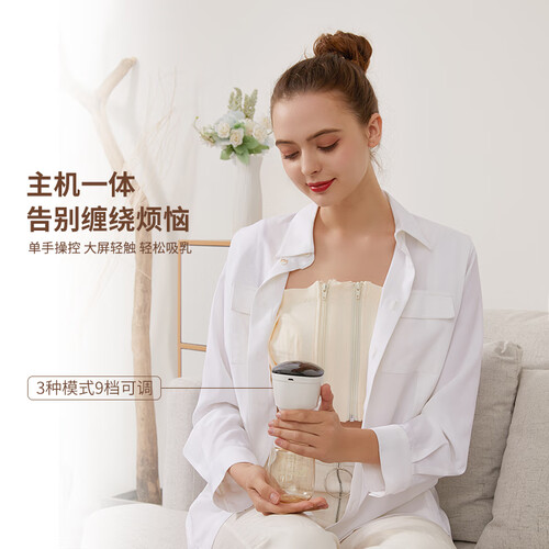 内置3种模式9挡吸力,随心调节,满足不同妈妈的吸乳需求。一体成型的设计,密封效果更好,不怕乳汁会撒漏。