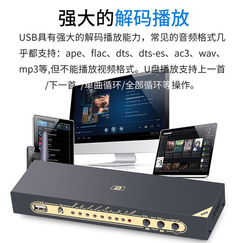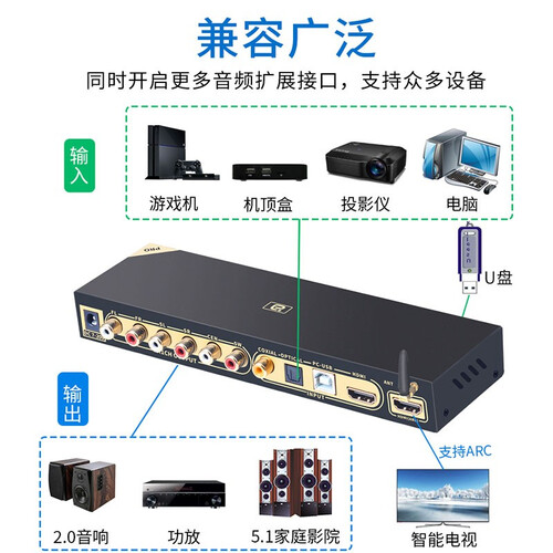 采用旗舰级硬解码芯片,性能优异,能有效降低噪音,带来清晰高保真音质,支持众多设备,兼容广泛,可同时开启更多音频扩展接口。