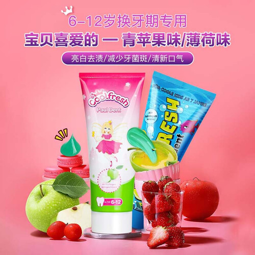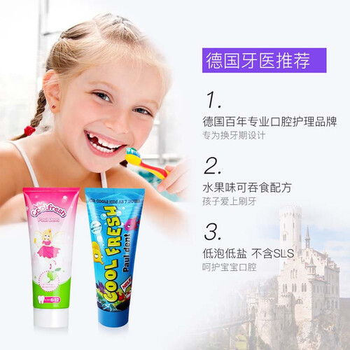 牙膏具有少量起泡剂和研磨剂,避免口腔组织受到损伤,呵护宝宝脆弱牙釉质。含儿童适用氟化物,安全防止蛀牙。