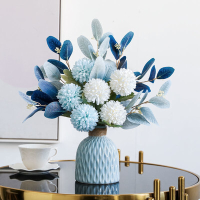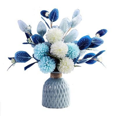 花瓶配以鲜花装饰,带来一股新鲜的气息,摆在哪里都是靓丽的景色。高温烧制的蓝色陶瓷花瓶,颜色均匀,清新风格充入视野。