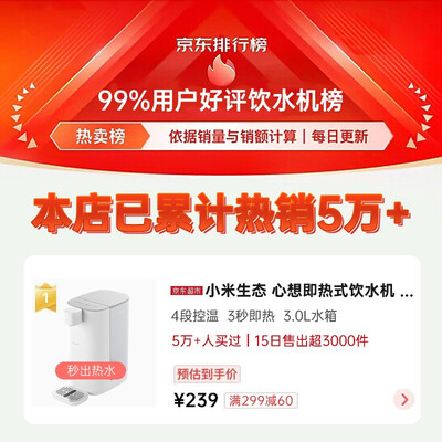 即热式加热的饮水机,饮用热水无需久等,方便家庭生活。搭载3.0升大容量水箱,轻松应对多人用水,减少烧水频次。