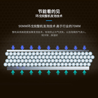 门体密封技术,90MM高密度加厚发泡技术,双顶开门体,阻隔热气,锁定低温。机体散入孔,机身配备散热孔,更好发挥性能。