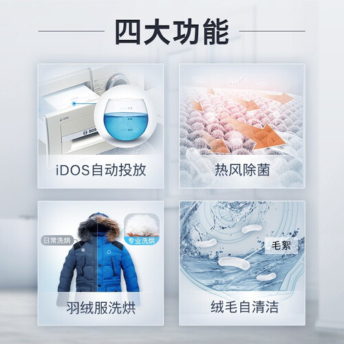 拥有羽绒服洗烘程序,有效还原衣物的蓬松感,可避免板结问题。内置BLDC电机,动力澎湃强劲,清洁效果更出色。