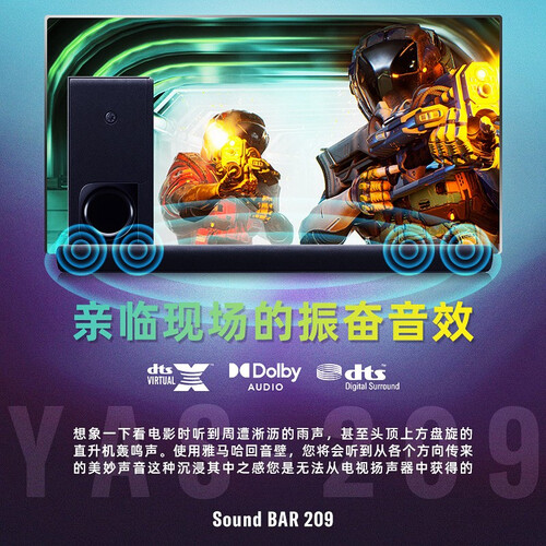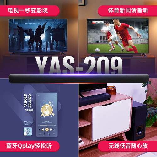 内置重低音,低音效果浑厚震撼,音质堪比影院效果,配备光纤接口,专业音频链接。让音质更加立体丰富,带给你舒适的收听体验。