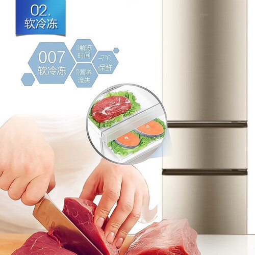 中门采用软冷冻锁鲜技术,各种肉类可随拿随用,无需等待解冻更方便。三门三温的设计,实现精细分储,拒绝互相串味。