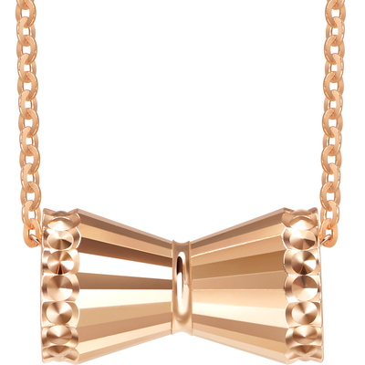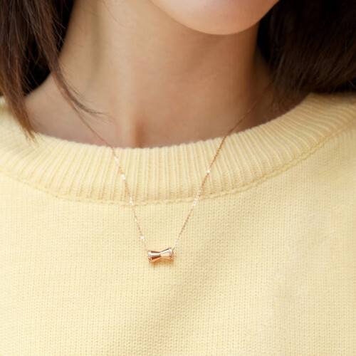 这款项链融入蝴蝶结元素设计,线条流畅曲线优美,彰显女性优雅气质。品质上乘的k金,性质稳定不变色。