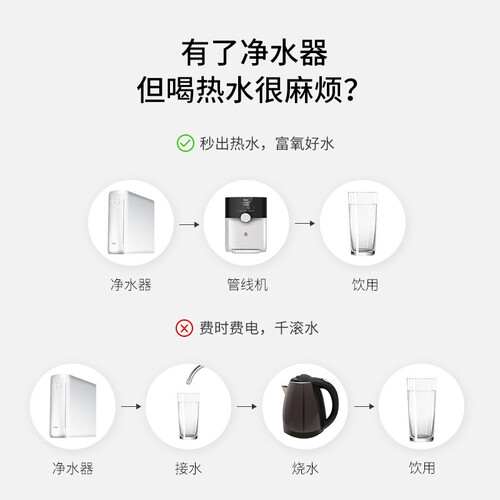 全石英双管加热结构,给家人提供鲜活热水。1℃精准控温,冲泡饮品口感更佳。