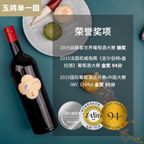 以帝王之笔为原型的玉鸽图案,拥有优雅古韵,凸显了唯美古风感。选用老藤赤霞珠葡萄酿制,入口圆润,果香浓郁。
