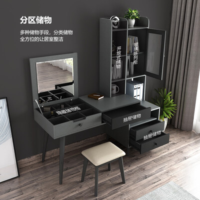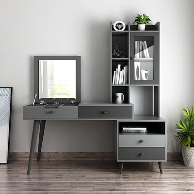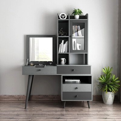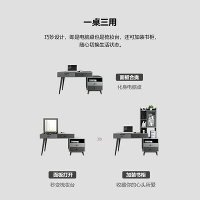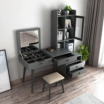 桌面翻盖式设计,上翻则是清晰的妆镜与储物宫格,方便梳妆打扮,放下后便是一张书桌,满足不同使用需求。