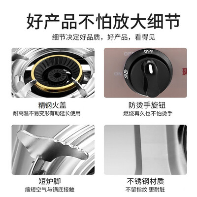 设有热电偶熄火保护装置,可有效避免燃气泄露等风险,提高安全系数。配备多角凹形炉架,可以牢牢固定锅具,不易滑锅烹饪更放心。