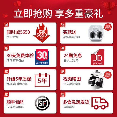 按摩椅模拟婴儿摇篮摆动节奏,用舒适的节奏让身心放松,在缓解身心压力的同时还有助于睡眠,提升睡眠质量。