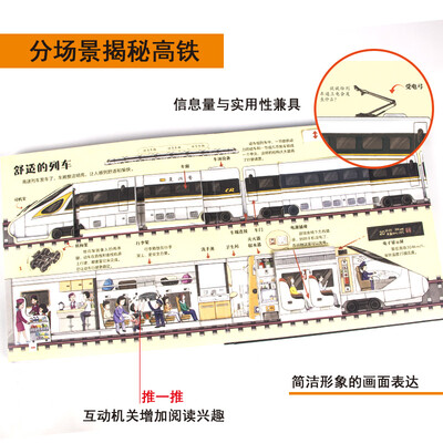 用立体结构和翻翻推拉机关,让小读者在了解高铁的科技内涵的同时,也获得真实的乘车体验和公共生活知识。