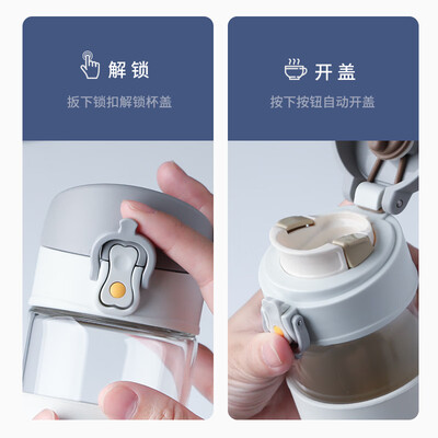 创新一键开盖式设计,区别于普通旋拧式构造,只需用指腹轻按,便可快速开盖,单手也能轻松饮水。