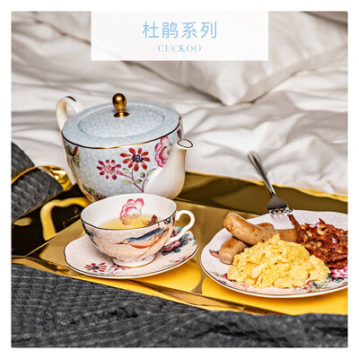杯碟套装的设计,让饮用咖啡更有格调,也是饮茶的不错选择。加入杜鹃以及花朵元素,尽显文艺优雅气息。