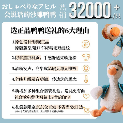 小鸭子造型可爱逼真,摸起来手感很好。衣服是可拆卸的款式,方便生活中的及时清洗。