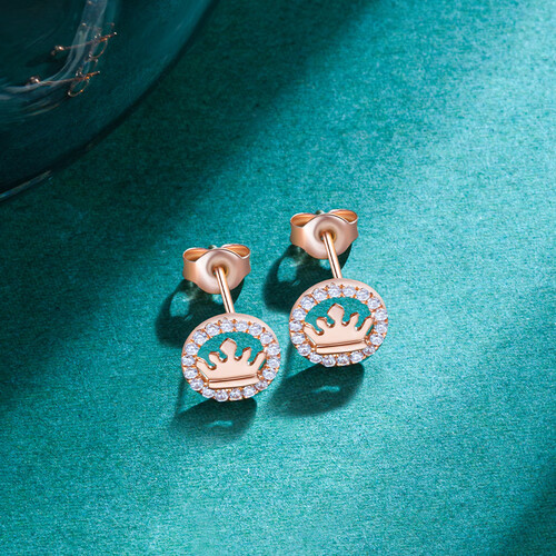 简约而不庸俗的耳钉,采用双色皇冠造型设计,佩戴在耳畔上更加精致百搭。表面经过抛光处理,更具闪耀光芒。