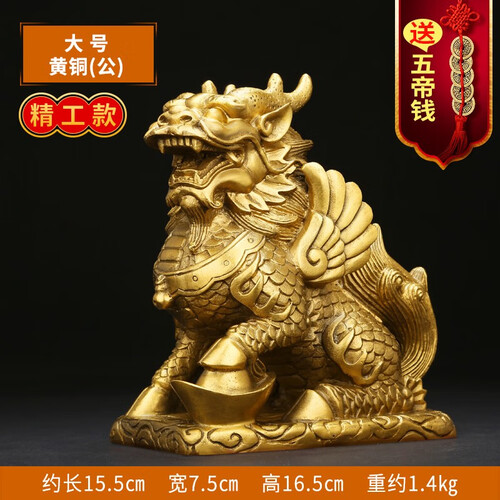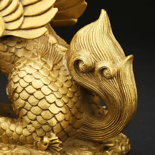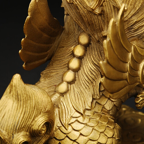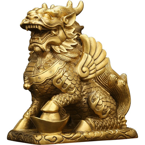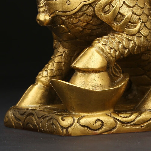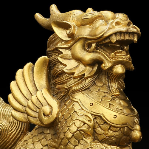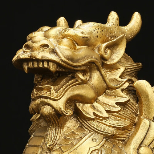 经多道工序制作成的麒麟造型摆件,脚踩大元宝,神态栩栩如生,摆放家中或公司等地,带来黄金满屋的美好寓意。