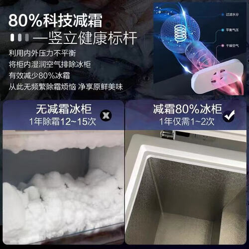 内置创新气悬浮减霜系统,有效过滤空气中的水分,帮助减少柜内冷气流失。采用隐形侧把手设计,满足大部分人的使用习惯。